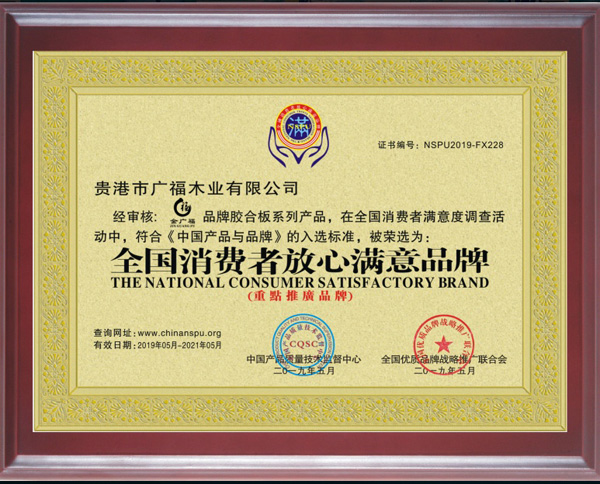 滿意品牌證書